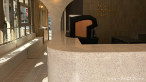 施工内容 本施工事例では、カフェ「クレープとエスプレッソ」の空間に合わせ、左官仕上げの質感を活かしたTOGiDASHI(研磨仕上げ)をカウンター天板に採用しました。 床タイルの色味や店舗全体のトーンに合わせ、白っぽいピン […]