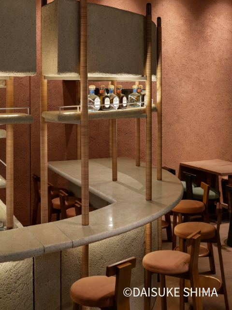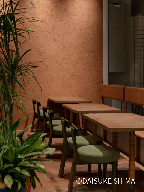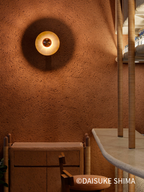壁面には、南米産の赤土のようなベージュ系の左官材を使用。